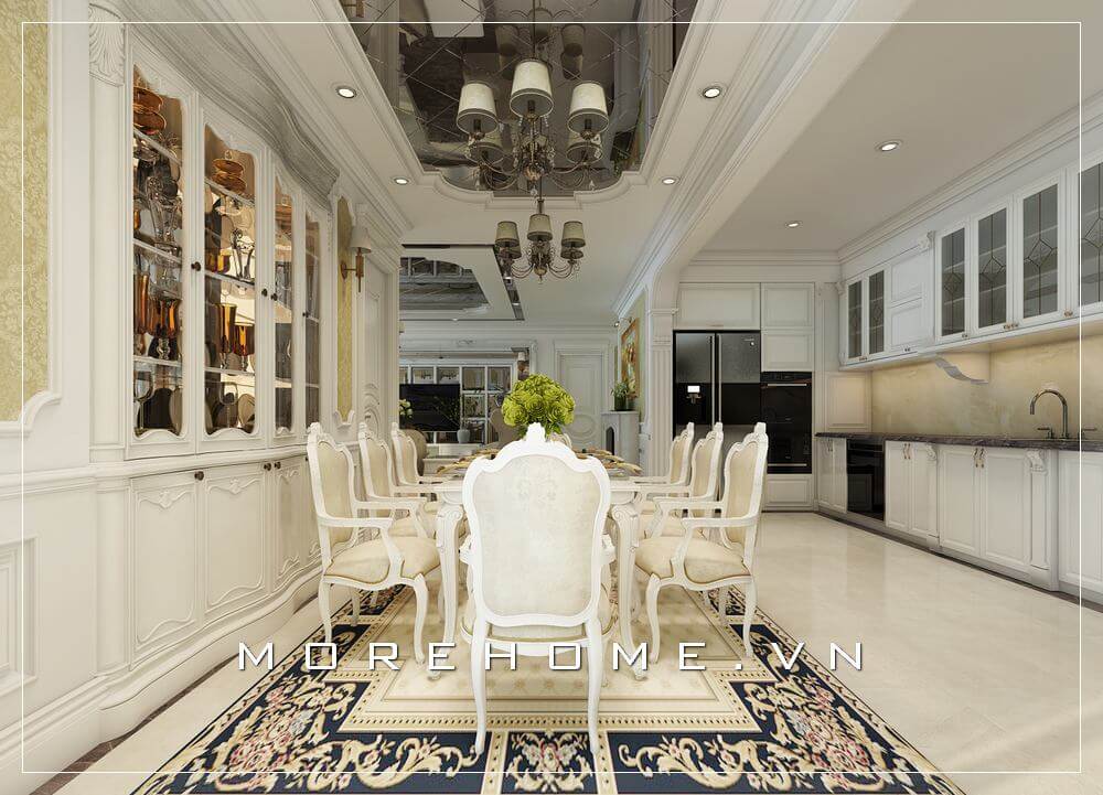 Mẫu bàn ăn gỗ tự nhiên tân cổ điển cao cấp và tiện nghi tạo không gian sang trọng và tinh tế cho nhà biệt thự