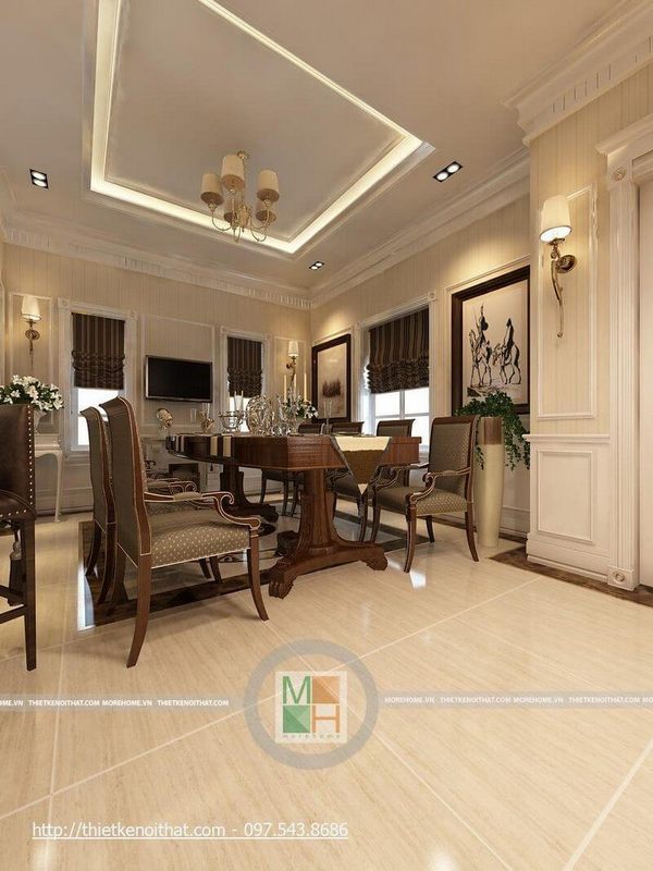 Mẫu bàn ăn gỗ với thiết kế tân cổ điển cho phòng ăn sang trọng