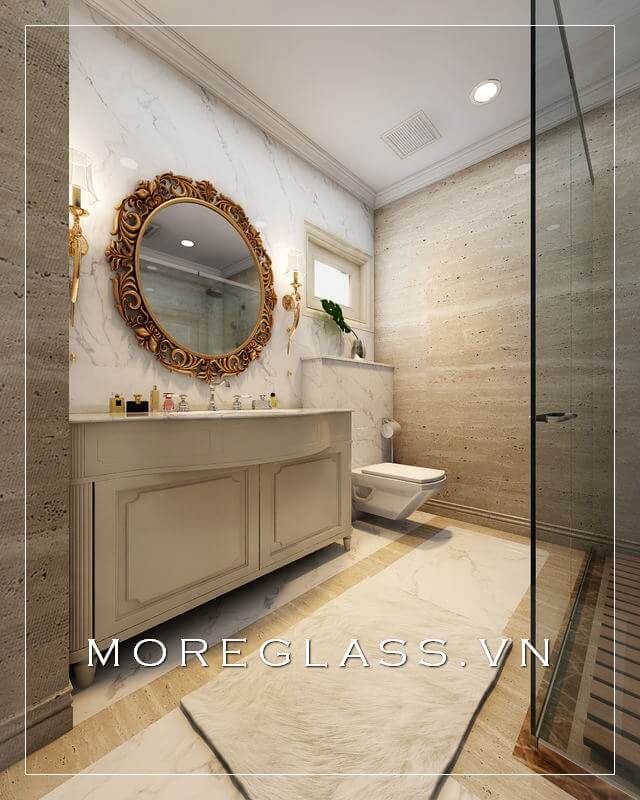 Mẫu gương tròn phòng tắm đẹp mang phong cách tân cổ điển sang trọng, cuốn hút