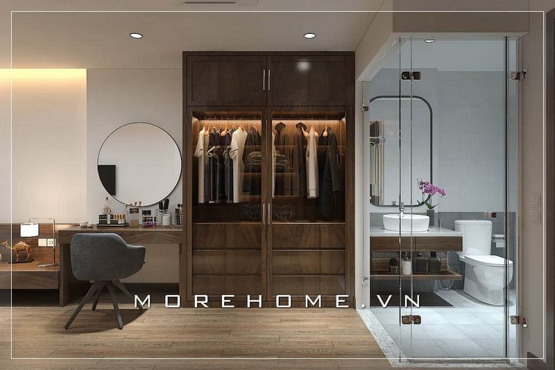 Gương treo tường hình tròn trong phòng ngủ đặt nơi bàn trang điểm vừa tiện lợi lại vừa sang trọng cho không gian thư giãn