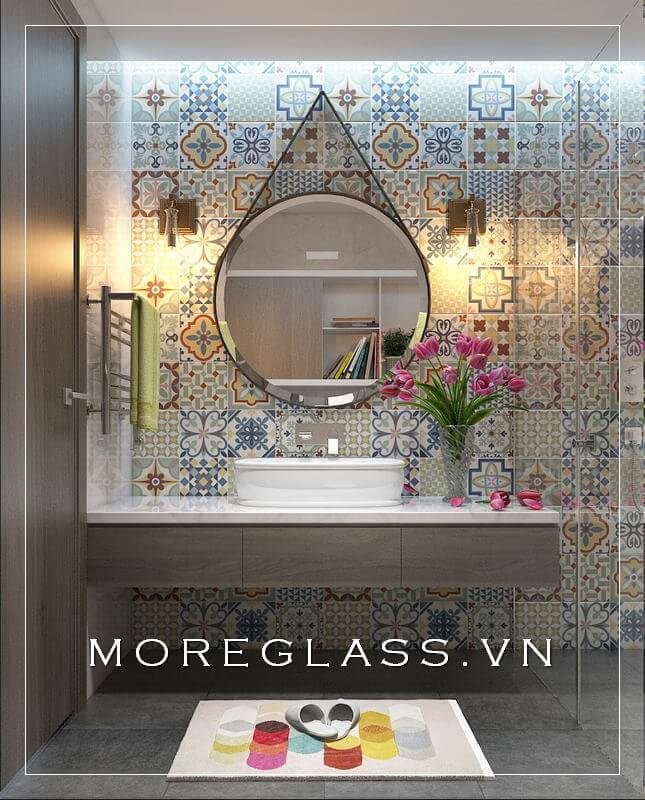 Gương tròn đơn giản nhưng vẫn cuốn hút nên được sử dụng nhiều trong các không gian. Phòng tắm cũng là nơi được nhiều gia chủ chọn gương tròn để bố trí.