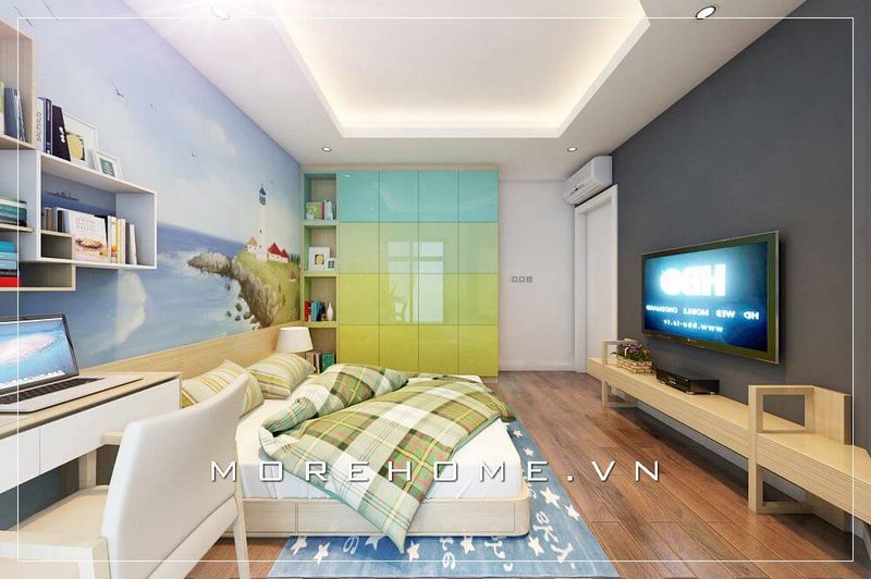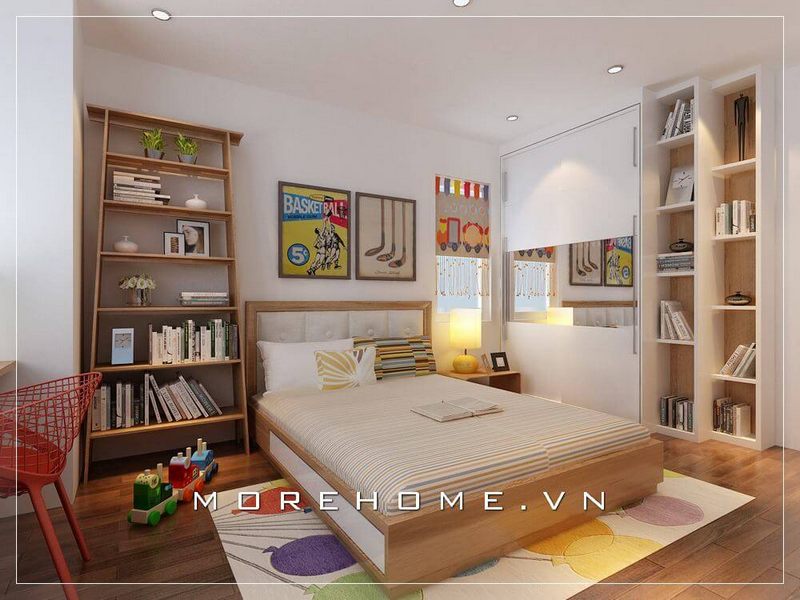 Thiết kế nội thất phòng ngủ con đơn giản, hiện đại mà không kém phần năng động