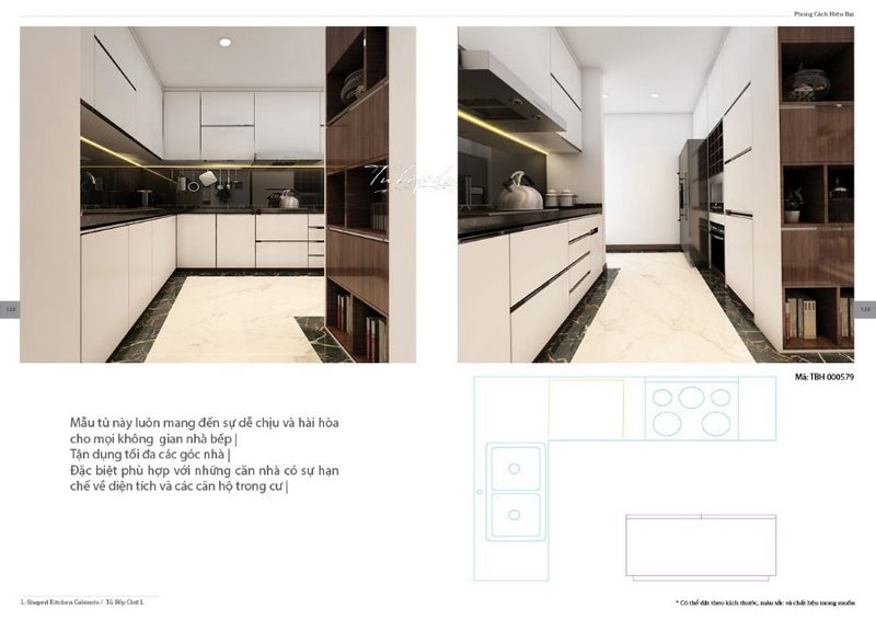 MoreHome đem đến cho khách hàng một mẫu thiết kế nội thất phòng bếp hiện đại trẻ trung, bao gồm hệ thống tủ gỗ công nghiệp acrylic màu trắng sang trọng, phù hợp với các loại căn hộ, biệt thự và nhà phố.